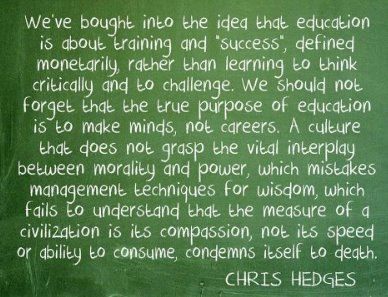 should not forget that the true purpose of education is to